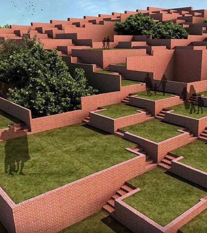 在32英亩的校园内,sanjay puri建筑师完成了印度印多尔威望大学主要行政办公室的设计。这座新揭幕的建筑呈交错排列,俯瞰像一片绿色梯田,“梯田”逐渐上升,露出20米高的结构。独特的体量容纳了各种功能,包括研讨会大厅、图书馆和自助餐厅,而第四层的整个露台可供学生和教职员工使用,并转变为景观中的开放礼堂。