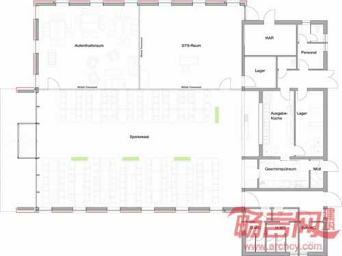 Spreier Trenner建筑设计公司完成了德国西部Salmtal中学餐厅设计,建筑外表由棋盘式的不透明板块和窗户构成,建筑不仅是学生就餐场所,同时也能用于游戏、音乐会或圣诞博览会等活动。