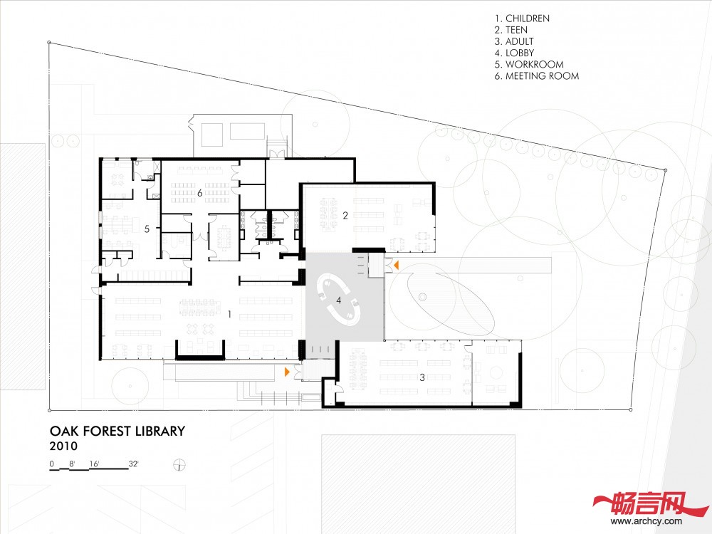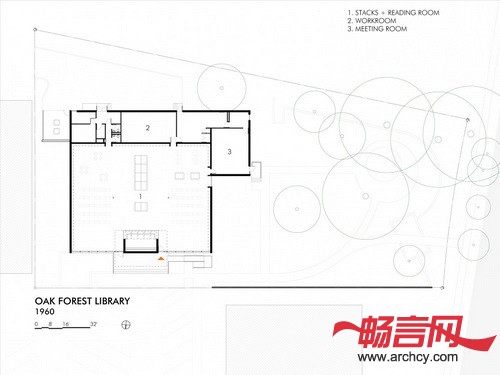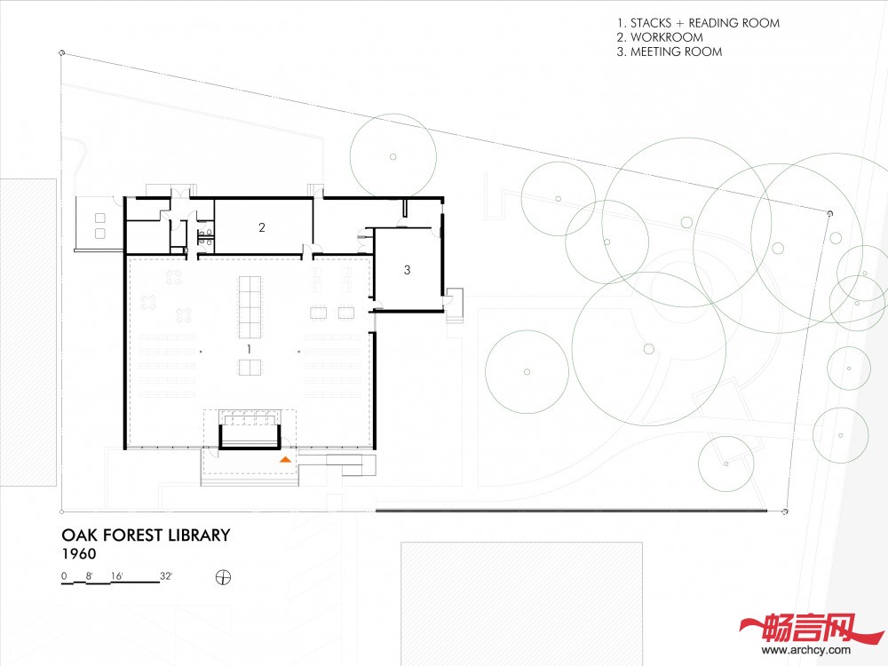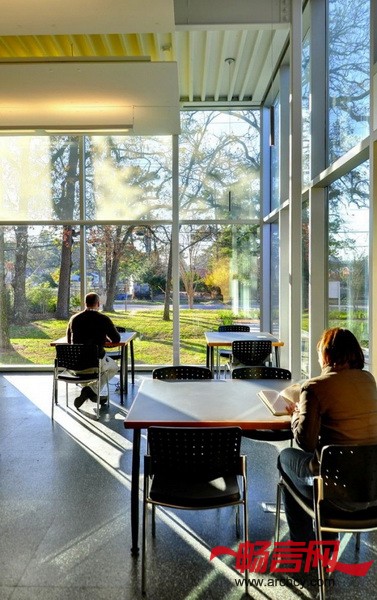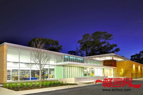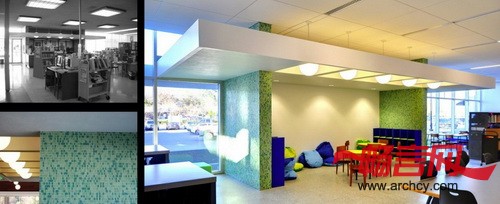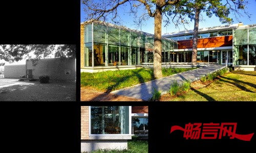 此次工程最主要的就是对图书馆进行扩建,即在原馆的东边增建一个成年及青少年翼楼,并在这里新设计一个入口。此外,还要在大橡树和松树下面建造一个室外阅读区。南面几乎都是玻璃幕墙,这样就会让儿童阅览室有充足的阳光,而旧图书馆那一部分则会被翻修成为办公室、洗手间、机房和员工区域。