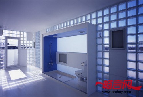 为了减少来自车库的噪音,并加强主人住宅的隐私性,Atelier Tekuto 公司使用了“钢筋混凝土结构+外部保温设备”的设计方法。而且通过使用高压木棉水泥板、并将它与住宅的外形材料融合在一起,大大减少了建筑费用。在经过仔细斟酌之后,原本设计使用的瓷砖也会照常使用。最终,连体砖墙住宅的外形同时具有RC翼楼的结实、坚硬和S翼楼的轻巧、灵便的特点,又兼顾玻璃幕墙的透明美和ALC砌板幕墙的模糊美。这些看似彼此对立的材料,在这座住宅楼里显得和谐而美观。