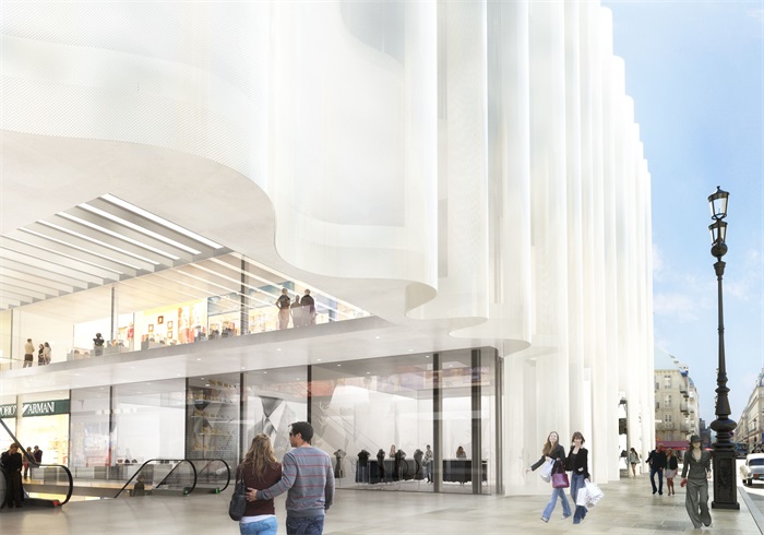 自2005年关闭后,经过漫长的策划与工程,巴黎莎玛丽丹百货公司即将重新开幕。项目整体更新设计主要由SANAA完成。给已有约百年历史的建筑罩上水波般的玻璃,这使项目险因“与周围建筑特征不符”被中途叫停。