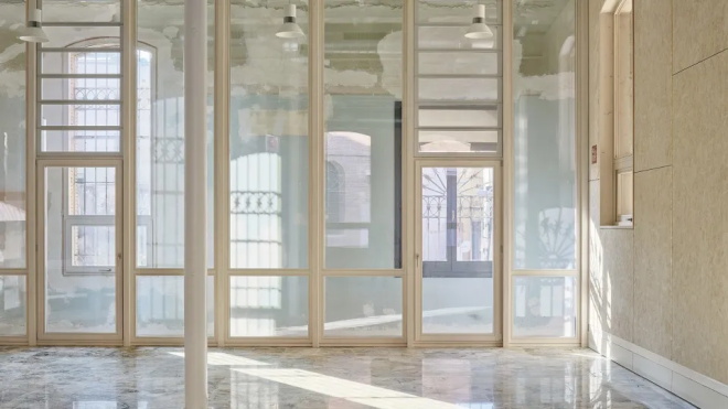 改造的核心策略在于尊重并延续建筑的历史记忆,将其视为一个能容纳新功能的“有机体”。设计保留了原始的结构体量与历史立面,同时引入被动式环境策略。新增的玻璃廊道作为生物气候缓冲带,冬夏两季分别实现保温与通风;一个贯穿全高的中央空洞则充当垂直通风烟囱,不仅促进自然采光与空气流通,更显露出一面富有历史感的内部立面,建立起过去与当下的克制对话。