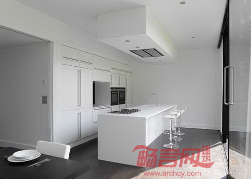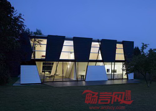 建筑师表示,“外墙中间隔设置了大玻璃窗,住户可以尽情欣赏林中美景,这种感受如同透过树枝的缝隙观察一样。”住宅覆盖了黑白两色护墙板,这种装饰风格在英国该区域十分普遍。这种外墙板如同树叶包裹了建筑和室内区域。