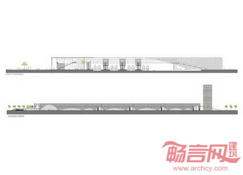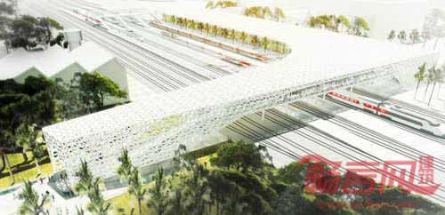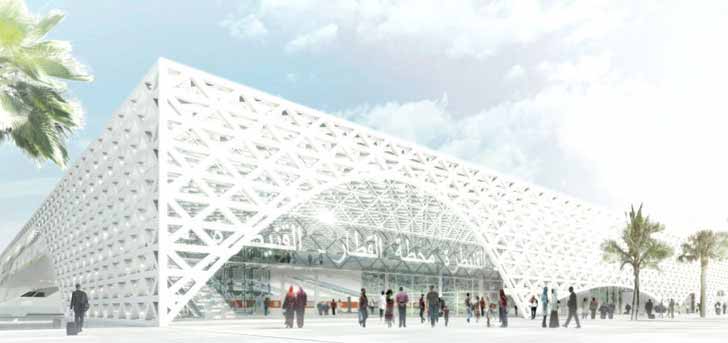 巴黎Silvio D’Ascia建筑事务所赢得了摩洛哥的Kenitra高铁车站的设计机遇,设计方案包括一层蕾丝状的格栅结构,配以高科技节能系统。设计师向传统摩洛哥建筑找寻灵感,将当地建筑外立面中的三角形重复图形转化在车站的外框架中。这种格栅结构同时起到遮阳作用,过滤非洲炽热的光照。车站拥有两个入口,分别是南面经过茂密植被的第一入口以及北侧的行人大道。Kenitra高铁车站呈现出“U”型构造,与一座高架桥相连,所占的面积很小。行人通过电梯、电扶梯和人行桥进入车站,不仅可以乘坐火车,同时可以购物、喝咖啡、休闲小憩。