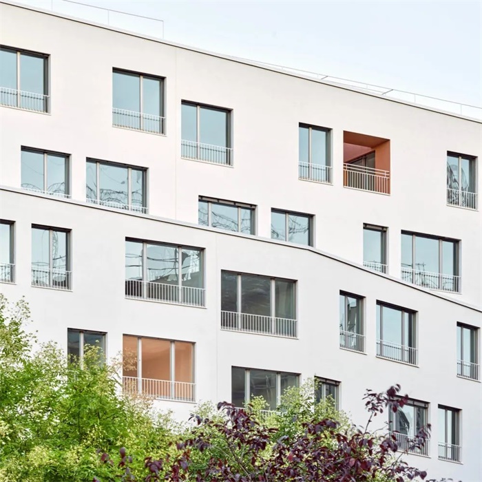 建筑立面的折叠、高度的变化以及最后两层楼的后退为城市提供了多样性。此外,通过统一窗洞(这些窗洞给人的感觉比实际要大一些),缩小了整体的感觉尺度,实现了更友好的尺度。