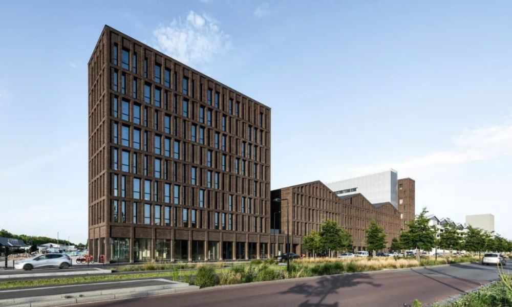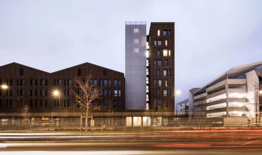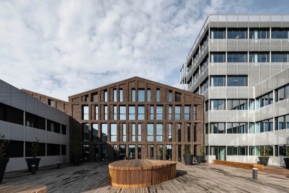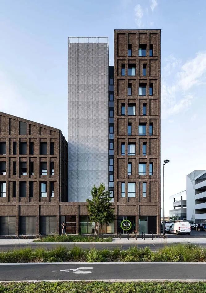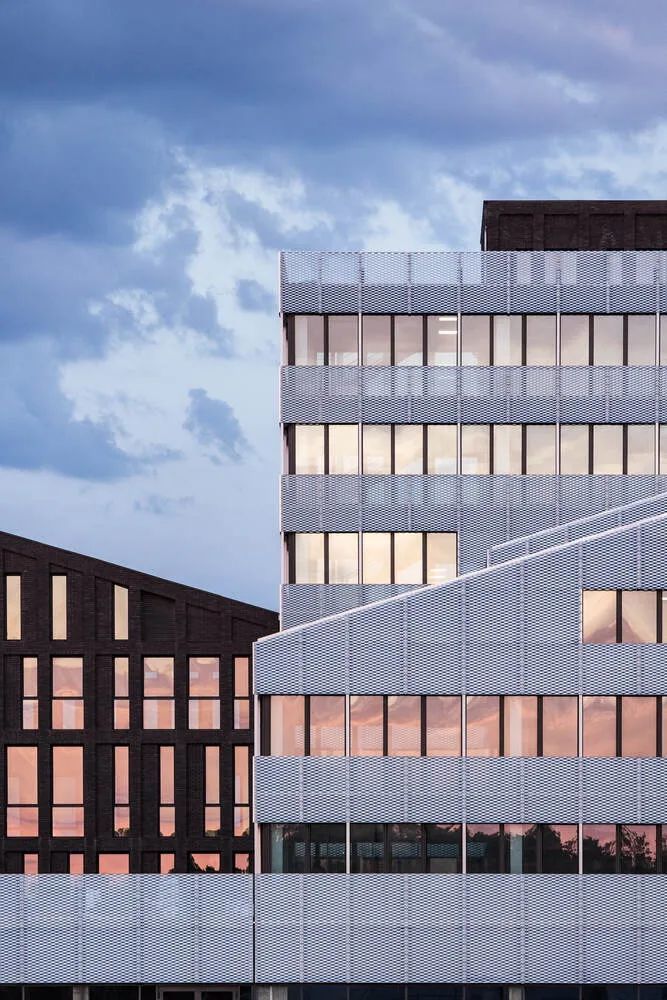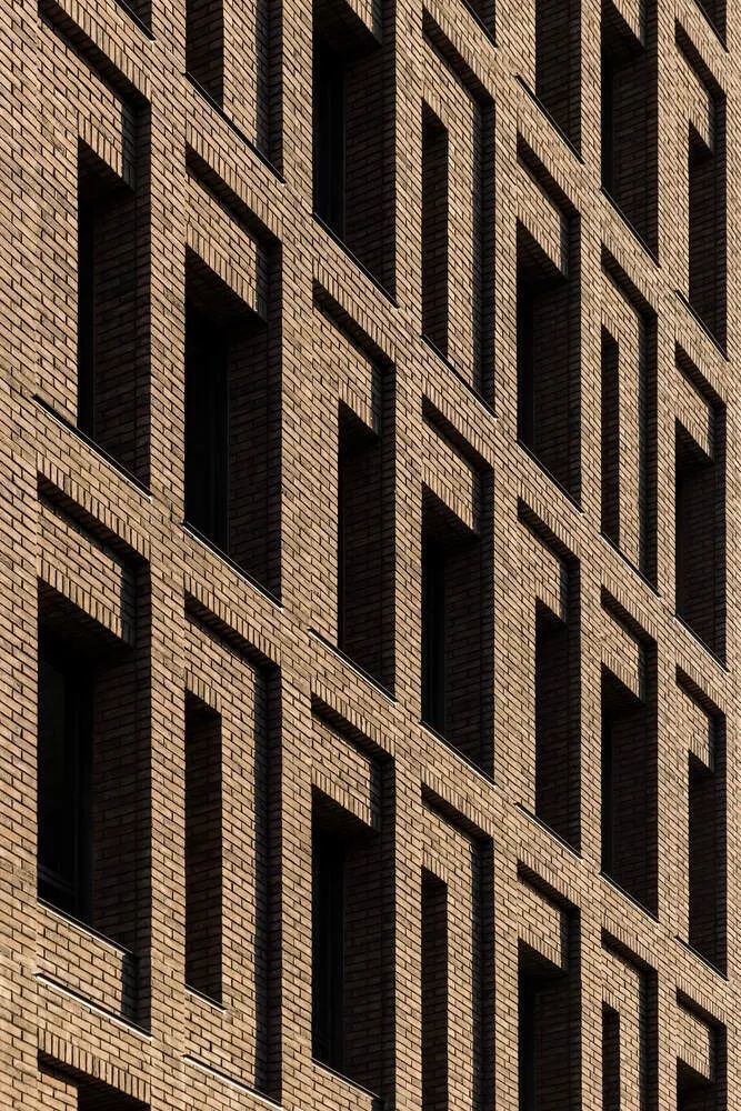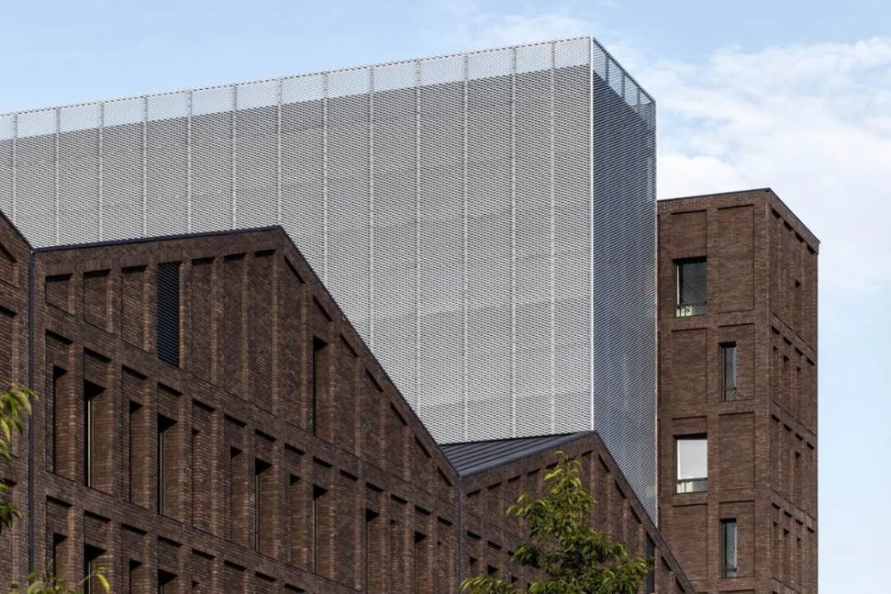建筑设计的原则也反映在立面使用的两种材料中,即砖和金属。沿街的砖立面强调了建筑与城市的关系。手工铸造的陶土砖的不均匀性,以及它的棕色,给了建筑一种独特的感觉,立面的整体图案和使其充满活力的窗户更加突出了这种感觉。
