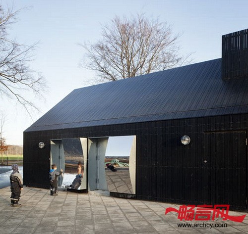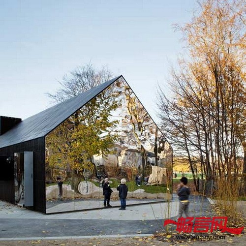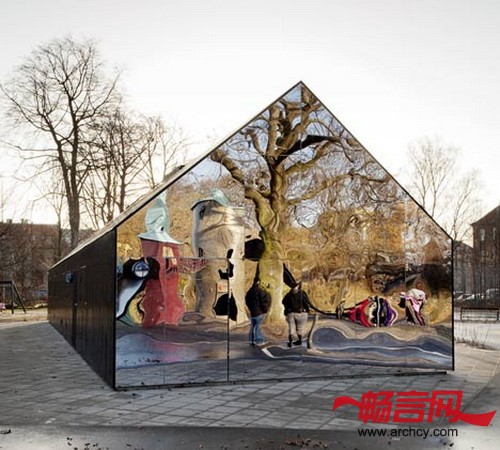 哥本哈根MLRP建筑事务所将操场上的一个墙上满是乱画图案的厕所修建了一下,修建之后,它的外观好看了很多,而且能映照出周围环境。