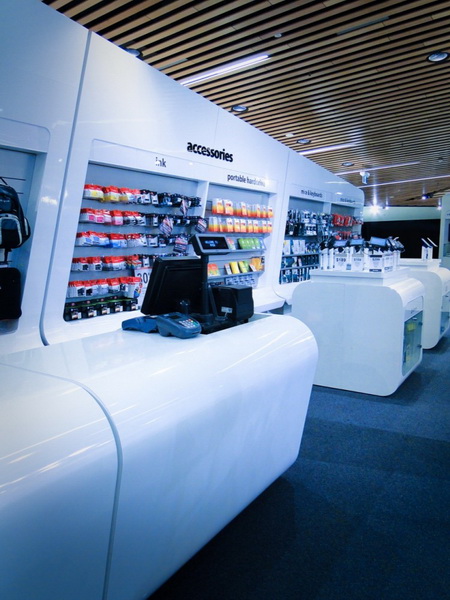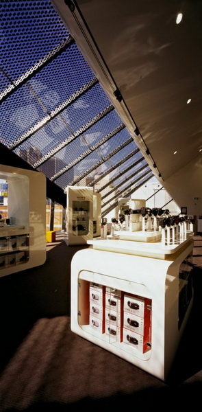 通过蜿蜒的购物架、陈列桌和曲线形的展柜设计,产品就能展出在曲线形、相互交汇的展柜上,这样就增加了商品展出的机会,促进了产品的销售。