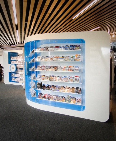 工装设计和规划也适应商场大楼漂亮、复杂的建筑环境。游戏一层倾斜、小平面的木块天花板让这里看起来更加有流动感,从而创造出了一个活泼的玩具空间。墙壁的设计与非常有活力的倾斜外墙线相互呼应。曲线形的贝壳形装置创造出了一个亲切的小零售区域,从而控制了外部光和效果。