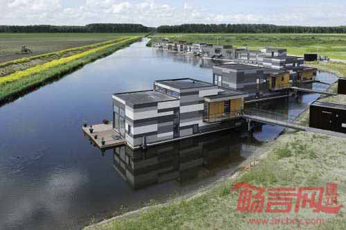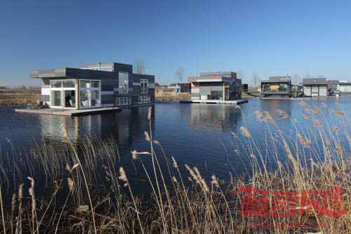 项目名为“漂浮在Lelystad”,包含八座水上漂浮住宅。业主童年都在水面上度过,他们一直梦想拥有漂浮住宅。这些业主组成了一个集体,委托Attika建筑事务所设计八座各不相同、和谐皮排的住宅。所在城市Lelystad海拔低于海平面4.8米,项目场地位于河沟边。设计师根据业主同的要求和期盼,赋予住宅不同的尺寸、颜色和形状。