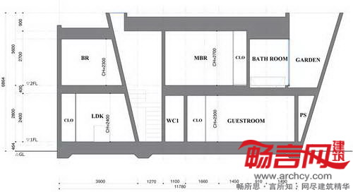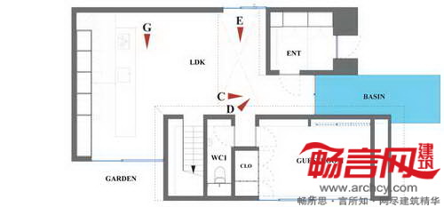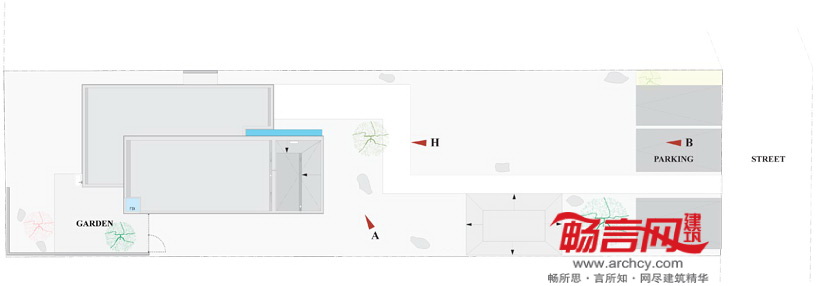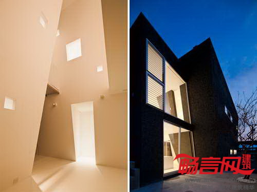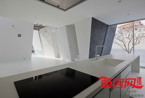 Keitaro Muto建筑事务所最近完成了一处位于日本岐阜县羽岛的“Ginan住宅”设计——围绕着将房屋和场地整体打造成花园的设计理念,设置了一条窄长的车道通向住宅的入口,道路两旁铺砌了砾石,上面的树木和巨石是从房主前住所搬运过来的。建筑外墙边缘呈斜线型,材料采用了黑色卵石,从而将景观区域使用的材质延伸到了建筑结构中。