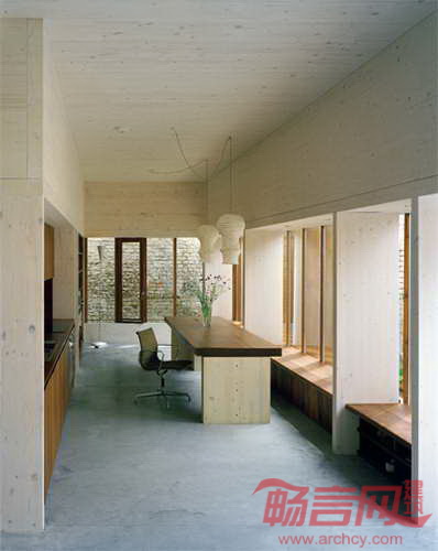 房屋面积不大,仅有75平米,低调地坐落在伦敦Deptford一处旧砖墙之中。院墙内原是一个旧馆,8年前建筑师Hugh Strange看出了这里的潜力,打算将其建成自己和家人的住宅。建筑师当时的住所后院紧靠着场地的北侧,而场地处于废弃状态。其后,建筑师从一个住宅机构处买下了场地,将临近繁华街道的场地打造成办公室以及一层的居住区域。