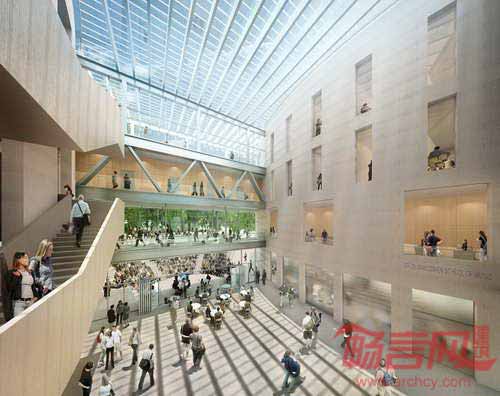 美国Safdie建筑事务所设计了其在澳洲的首个项目——Monash大学音乐学院,项目将成为大墨尔本地区的新音乐和文化中心。项目包含了两个对称预制混凝土墙面之间的接待处和大堂空间,以及巨大全高度中庭,共容纳爵士俱乐部、咖啡厅、餐厅、百货店、录音间、40个练习室及配套空间。金属横梁和玻璃表面营造出透明高大空间,将访客吸引到半公共区域中。