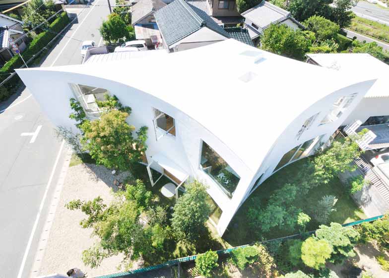 日本Velocity建筑工作室设计了位于爱知丰川市的一栋白色住宅。建筑具有压扁的钻石形状,一方面最大程度扩展了空间,另一方面不对周围邻居的视野造成不利影响。项目名为“城市森林住宅”,住宅在矩形场地上延伸,狭小的花园空间内沿住宅墙壁栽种了绿树。建筑师表示,“场地三个侧面均与周边住宅相邻,而这些住宅均有窗户朝向场地。为了回应场地特点,我们营造出森林般的户外环境,包围了房屋的四角,如同池塘中的涟漪。”此外,建筑师还将建筑的曲线形状比喻成树木的有机生长过程。他透露,“植物依照外部环境和自身条件,自主选择在何处展开枝叶。我们希望能设计出展示同样品质的建筑。”