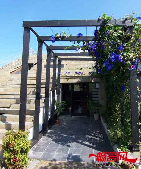 同时,台阶遮住了大部分的玻璃窗,让阳光从玻璃缝隙中照射进来,这就避免了炽烈、直射的阳光,而使间接的反射阳光照射到住宅里。