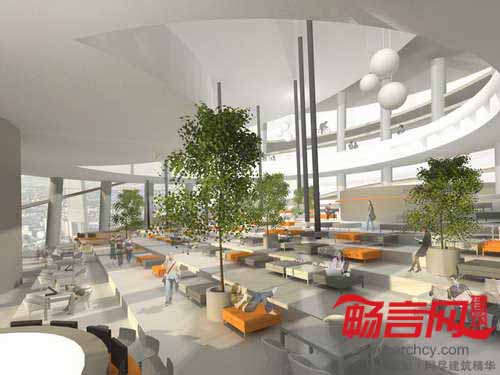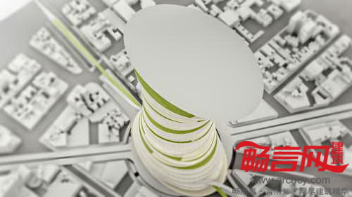 城市问题通过采用不同视角看待可能会迎刃而解——设计师的建筑结构设计灵感从此得来。这种观念的表达形式是一条长达5公里的莫比乌斯带,围绕整栋建筑,可为抛物面体建筑提供结构支撑。建筑将位于城市一个关键环形路口处——两个公交节点(地铁和轻轨)以及城市最大的交通环线交汇处。选取该地段是因其较高的行人和车辆通行量,以及往来穿梭的城市人群身份的多样性。