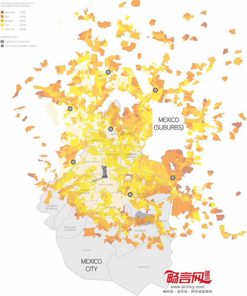 作为城市改造策略的第一步,位于墨西哥城中心地带的名为“Barrio Capital”的公共摩天楼深入挖掘到了该市部分最为紧迫的问题。建筑设计方是Molcajete. Urban Think Tank,项目对一系列城市问题做出了回应——譬如居民人均公用空间稀少、停车空间不足,以及首要问题——来自不同社会、经济层次的人群缺乏交流。