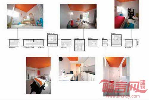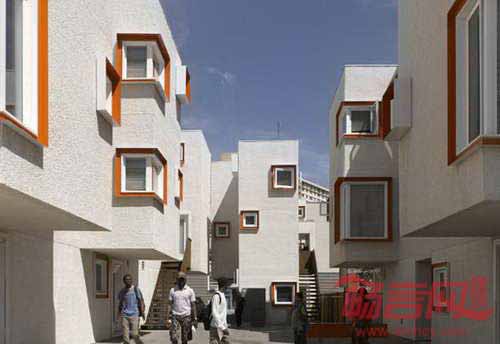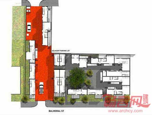 项目位于城市中心一块久被忽视的场地上,依照原先规划,场地上仅包含6户单户住宅。其后,新区域规划使开发商将计划改成为低收入家庭建造25套保障型公寓。从6户到25户显然是极大的变化,不过设计方在保持对于住户的前提下,运用了足够的创新性。设计师没有将所有住宅生硬地塞进建筑物内,而是创造出微型村落模式,并通过公共庭院和自有街道使布局完善。设计鼓励社区成员交流互动,邻居之间增进了了解,空间得到了多样化利用。