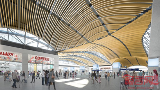 伦敦Grimshaw建筑事务所同奥雅纳公司合作提交了伦敦Euston车站新方案。这一项目包含11个站台,是设计公司的新方案。项目将使车站成为高铁车站,铁路线路将连接伦敦和Midlands。除了更新提升现有车站设施外,新车站将1960年代的Eustons大厦向东扩建。HS2扩建工程拥有自身入口,设有花瓣形的黄色屋面,配有商店、餐厅和咖啡馆。