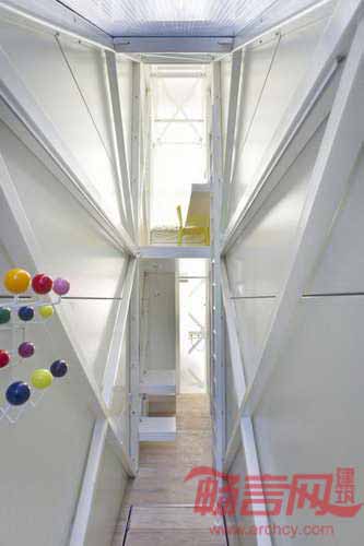Szczesny是艺术团体Centrala的发起人之一,他与以色列作家Etgar Keret协作,设计了这个仅够一人容身的三角形住所,设计师调侃道,“住户必须有点幽默感,毕竟没有哪个人能在这样狭小的空间里待很久。”