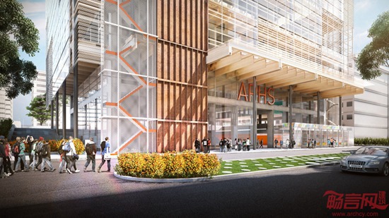 Grimshaw建筑事务所构想了位于澳洲Parramatt郊外的高层学校建筑。项目注重创造创新性学习和融合绿化环境。BVN公司同时参与了该项目,两家公司共同为一所高中提出了一种独特的建筑设计方案。项目共有14层,高度达到66米,高中建筑奖成为澳大利亚首个高层教育设施。项目理念基于创造“学校中的学校”策略,让学生可以跨越不同阶段进行学习。