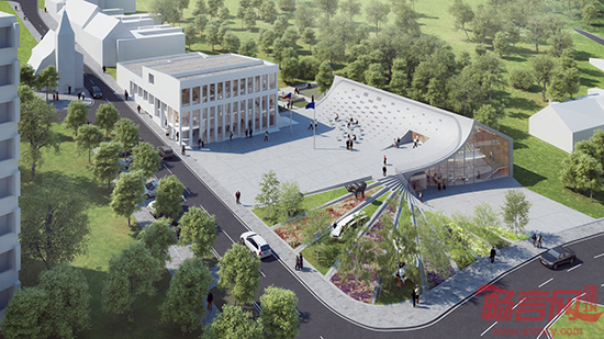 PLUKK意在将该大楼设计成便于周围社区居民活动的公共场所,因此采用了“半景观、半建筑”的设计。项目被分为两部分,公共活动平台之上的部分为市政厅大楼,而另一部分则为社区中心。