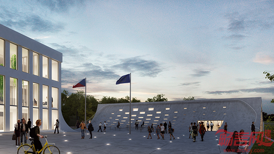 捷克当地建筑事务所PLUKK近期公布了其设计的一座市政厅与社区中心大楼。大楼建在捷克布尔诺市中心的一处斜坡地块上,由两个风格不同的楼体组成,其间由一个充满活力的公共空间联系起来,构成了一个功能多样的市政厅大楼。