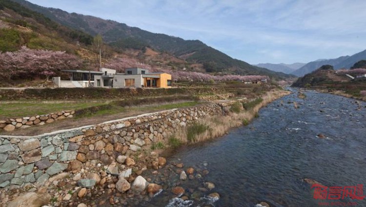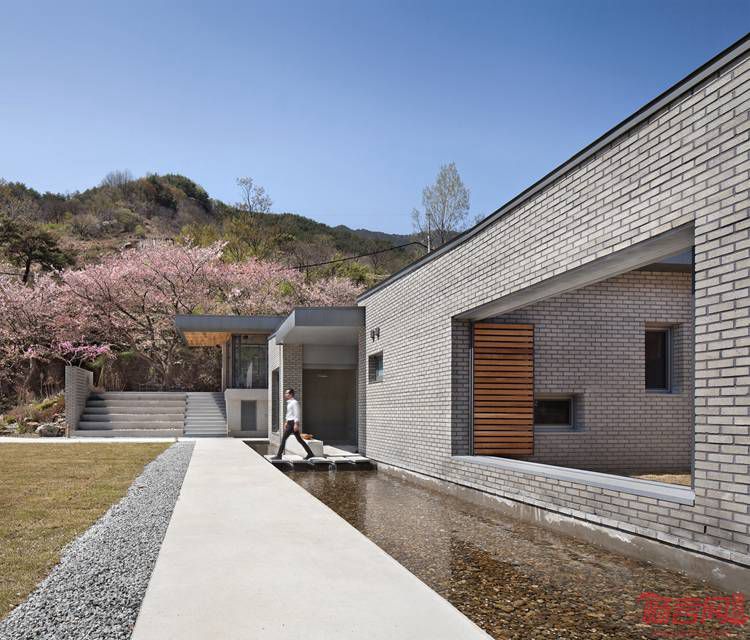 Lee Haan工作室完成了两院住宅与130桥咖啡厅项目。业主是一对年轻夫妇,他们逃离了都市环境,选择在风景如画的Hwagae地区享受宁静生活。两座建筑毗邻的马路通向著名的Ssanggyesa寺庙。场地开放的属性和建筑不同功能要求建筑师考虑设计不同程度的私密性,保证住宅和咖啡厅同环境相融合。