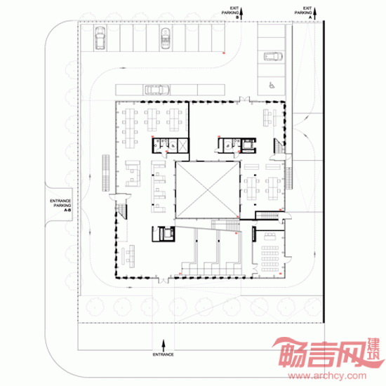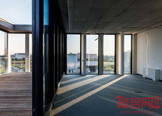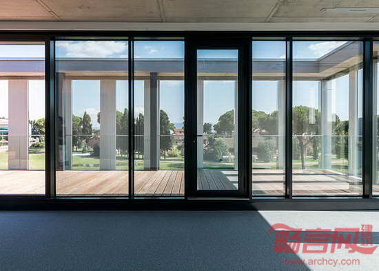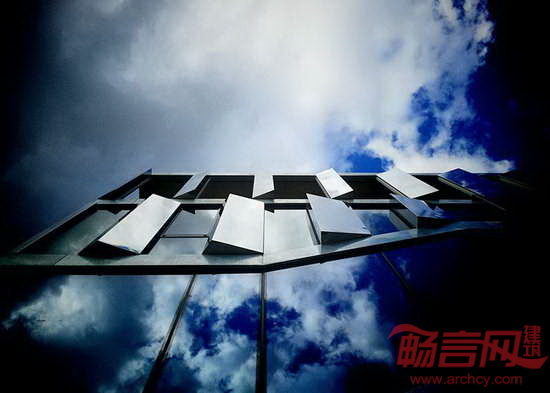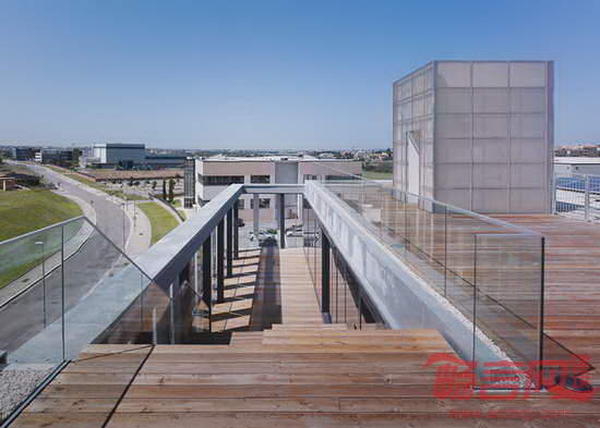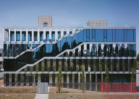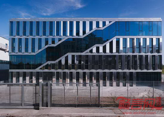 Modostudio工作室设计了位于意大利罗马东部科技园区的Intecs办公楼。项目特点是在外立面上设有外观醒目的玻璃楼梯。两个楼梯沿着外立面逆时针方向设置,为员工提供欣赏周边绿化区域的视野。设计方在建筑竞赛中成功中标,赢得了为软件公司设计3500平米办公楼的机遇。