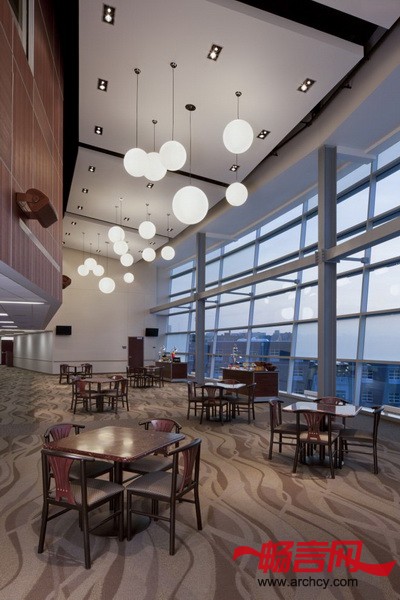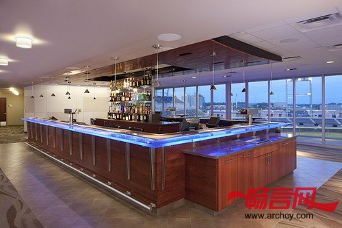 这座新体育场是为与这里的娱乐场地之性质和作为去往郊区的门户而专门设计的,它将是奥马哈市城市发展的助推剂。体育场是基于不同的活动体验而进行设计的:包括学生运动员参加比赛的活动、球迷及观众在不同的赛季参观比赛的活动等等;以及根据体育场作为公共场所而进行的不同活动(包括作为世界大学生棒球系列比赛及它与奥马哈市的关系)而专门设计的。自然光线照亮了这座四周围起来的体育场地,让观众有了更好的室外观赛体验。此外,体育场里的各个建筑之间还有许多小开口空间,透过这些开口,观众们可以看到一个个不同的城市景色,仿若一张张小插图一样。体育场的二楼上还安装了许多玻璃,这使得二楼的观众也可以欣赏到郊区的景色。体育场现代感十足的设计与一层的华丽庄严的外墙和玻璃相得益彰。场馆上还有一个象征性的金属“halo”屋顶,它可以全天为观众提供阴凉。