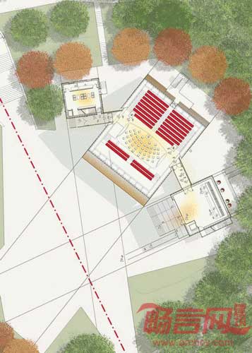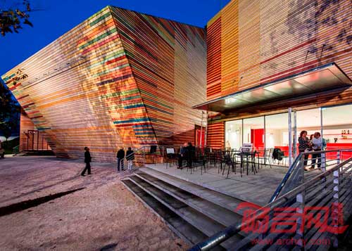 Renzo Piano建筑设计事务设计由三栋木质立方体组成的建筑,取代了在2009年意大利拉奎拉地震中受损的旧音乐厅。