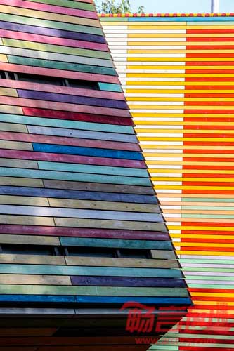 Renzo Piano建筑设计事务所完全运用木材完成了项目建设。木质材料采用了预切割,以平铺形式运送到建筑场地上,最后固定拼接成一体。