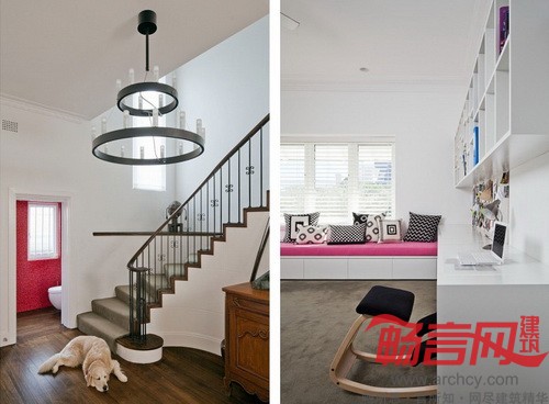 澳大利亚建筑设计公司MCK Architects对悉尼市郊Bellevue小山上的一幢别墅(Honiton Residence)进行了改造设计。