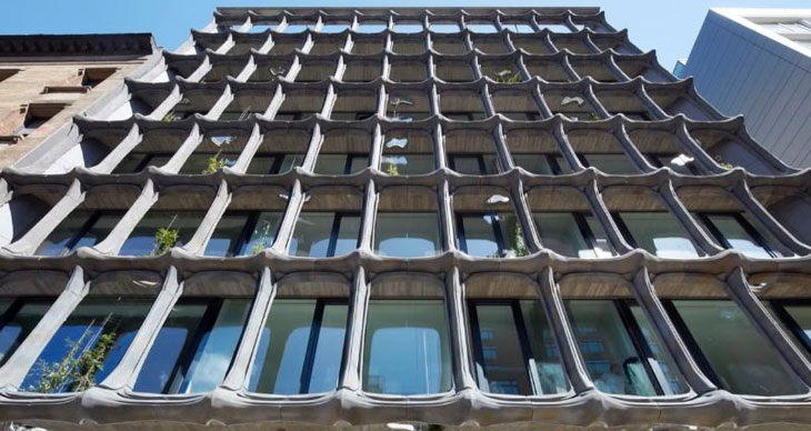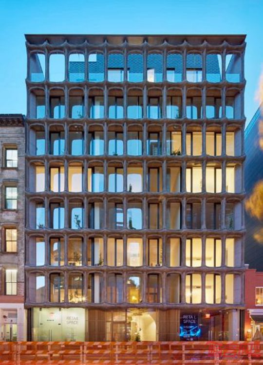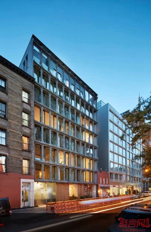 DDG建筑事务所设计了位于纽约的XOCO公寓楼。项目面积7万平米,于2016年完工。这是一座高档住宅楼,场地上原先是一个巧克力工厂。全面项目的设计,开发和建造全部由DDG完成,设计参考了SOHO区著名的铸铁Loft建筑风格,营造出经典和当代设计之间的平衡。醒目的铝制外立面如同漂浮在玻璃幕墙之上,成为所在区域历史铸铁建筑的当代诠释。