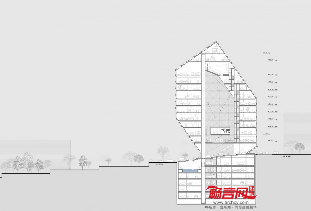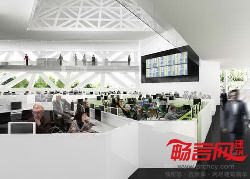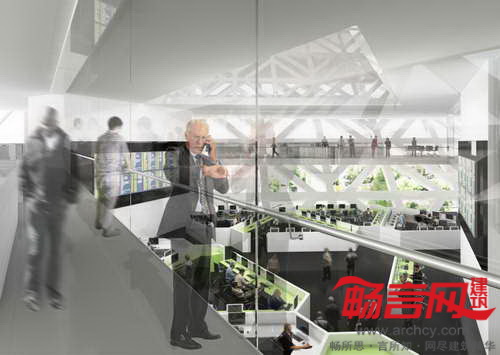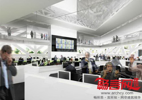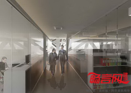 所有的办公室均较好地适应了建筑的形状,项目设计证明了一个观点——真正的建筑布局设计一定来自设计师与使用者的紧密合作。建筑中心,容量充足的升降电梯、手扶电梯、楼梯将带领人们自由的上下。建筑的顶层将加盖一个拥有独立功能的餐厅,或许还会添加一个观景平台。