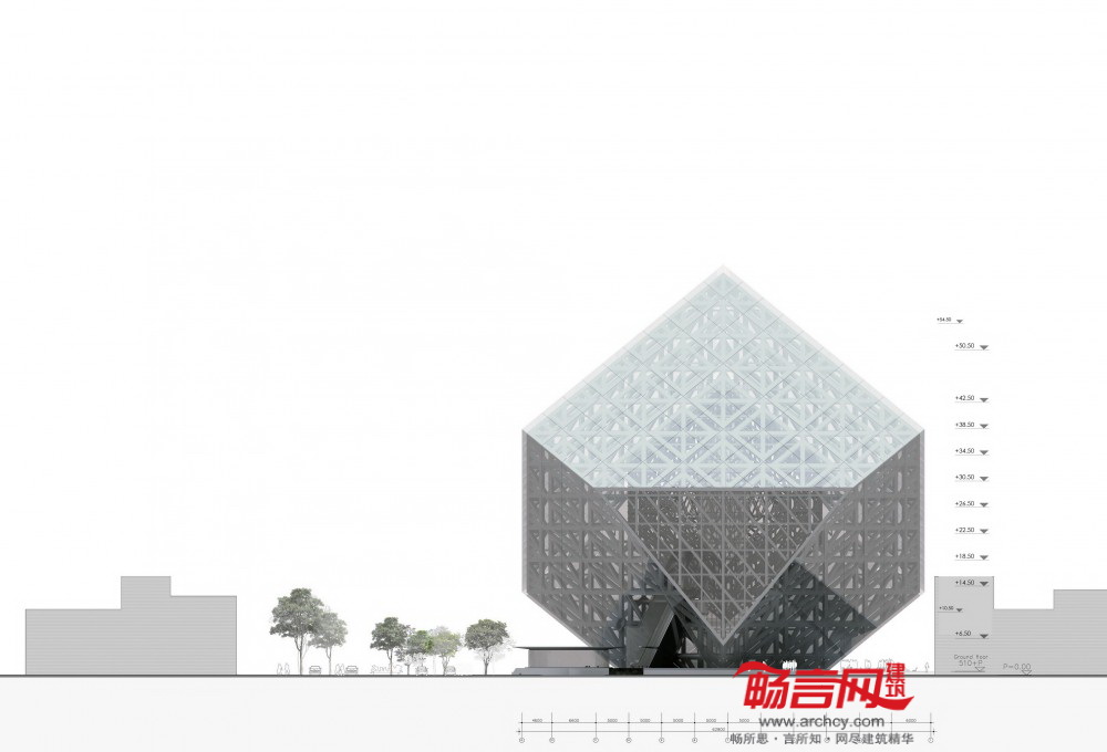 交易所的建造场地位于老城中心、商业区和巍峨高山之间的坡地上,特殊的地形使得建筑成为了地上10层、地下6层的形式。交易所将比周边建筑高出不少,在整个城市范围内并不算高,因而对德黑兰的天际线的影响微乎其微。建筑呈现出盒子形状,通过旋转建筑体,提供了能够遮阴、避寒的自然户外广场。