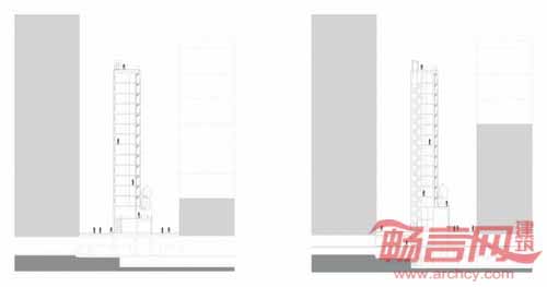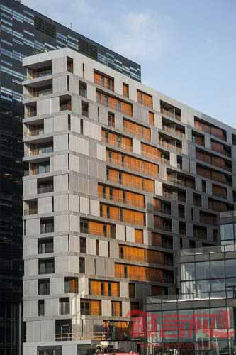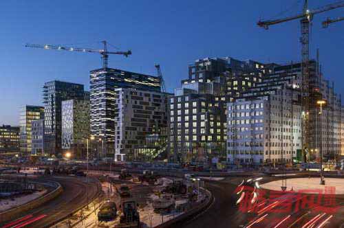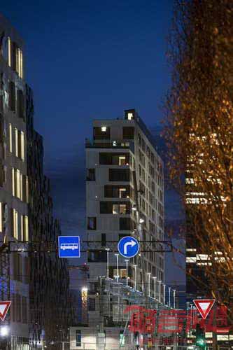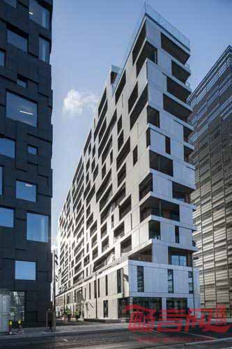 用地局限几乎是最能激发设计师创造力的条件。位于挪威奥斯陆的MAD住宅建筑场地宽度仅为11米,这样狭窄的场地对于15层住宅楼可谓捉襟见肘。住宅楼两旁两栋16层建筑进一步凸显了场地局促,这就要求设计师必须别出心裁,出奇制胜。