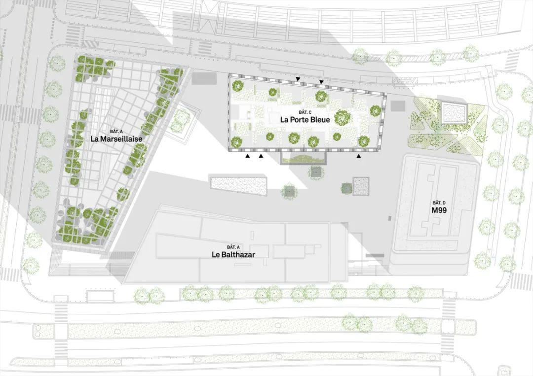 蓝色之门(Porte Bleue)位于欧洲地中海区(Euromediterranee),内设四星级旅游住宅和住宅单元。蓝色之门自 2016 年至 2017 年由 PietriArchitectes 负责设计,该项目是港口、道路和城市之间真正的连接点,体现了马赛的门户之一。在这座 53 米高的建筑中,有两个实体组成。- 第一个是四星级旅游住宅,位于底层 11 层,共有 250 个单元,装饰考究,同时还设有室内游泳池、餐厅和接待区,是一个专门的休闲空间。- 第二个项目位于最后 7 层,由 68 个住房单元组成,总建筑面积为 4 891 平方米。