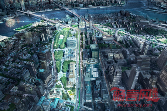 建筑设计与城市规划事务所WXY Architecture + Urban Design近期公布了将纽约布鲁克林中心地带到布鲁克林桥之间的50英亩公共空间重新连接起来的规划方案。该项目名为“布鲁克林线”,旨在打造一个更加吸引人而且更加通达的水滨场所,同时转变该区域的公共空间质量。