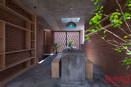 房子的前后院充当了缓冲区的功能,这样可以降低外界环境高温的影响。前院可以进行一些休闲活动,比如在早晨喝一杯咖啡,在这里,自然风、阳光和砖墙斑驳的影子交织在一起。
