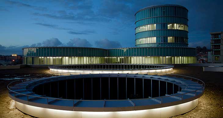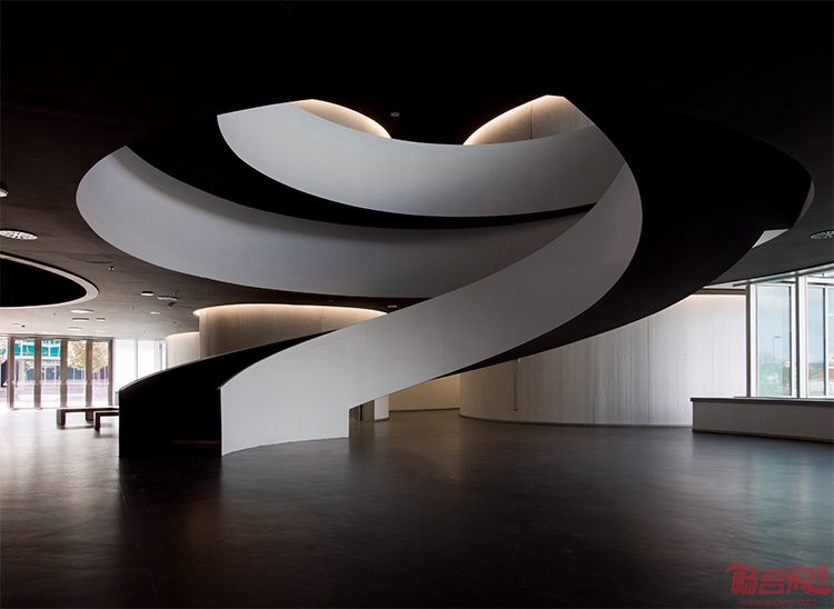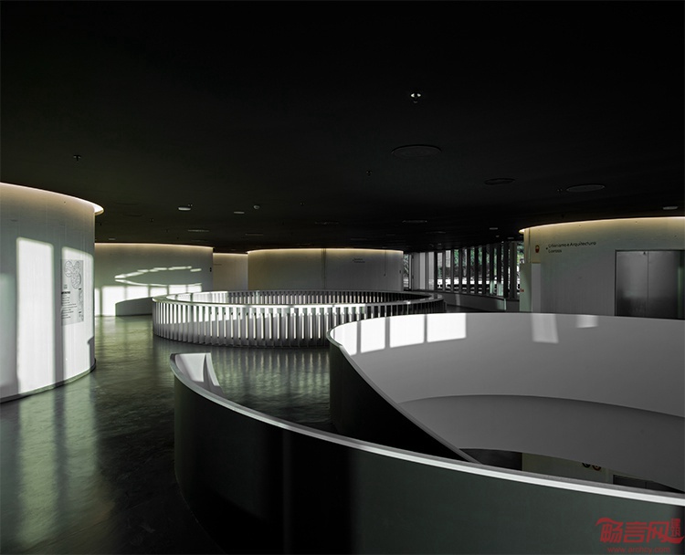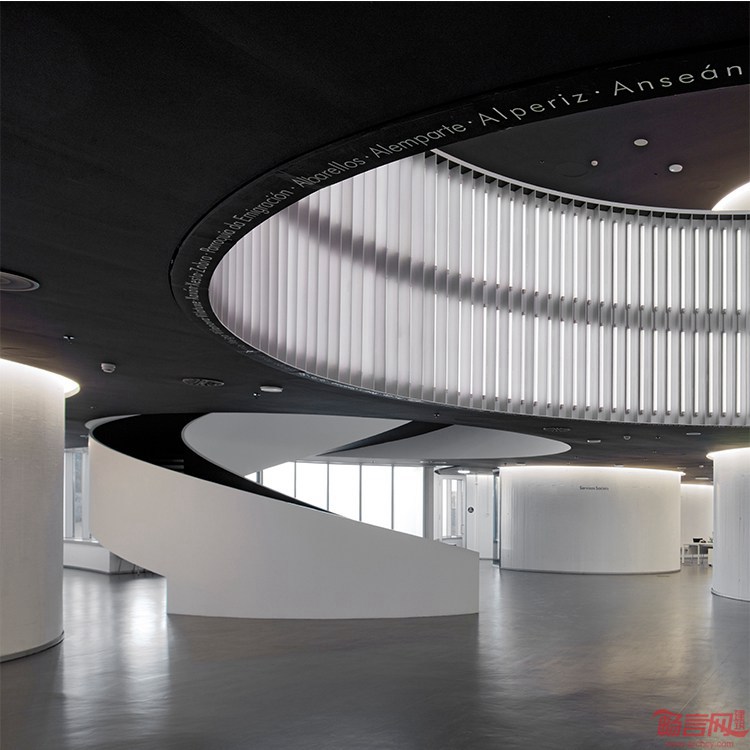 新建的Lalin市政厅是一座开放式建筑,同周边环境建立了对话,采用分散式布局,去除了拥挤感。建筑具有主空间结构,包含两层地下室和圆筒形的四层地上空间。室内部分,大堂围绕一系列圆筒单元展开。这些圆形空间均拥有各自功能,共同构成了较大的环形结构。人们可以通过宽敞的环形中庭进入建筑,入口位于同Galicia广场连通的场地南侧。