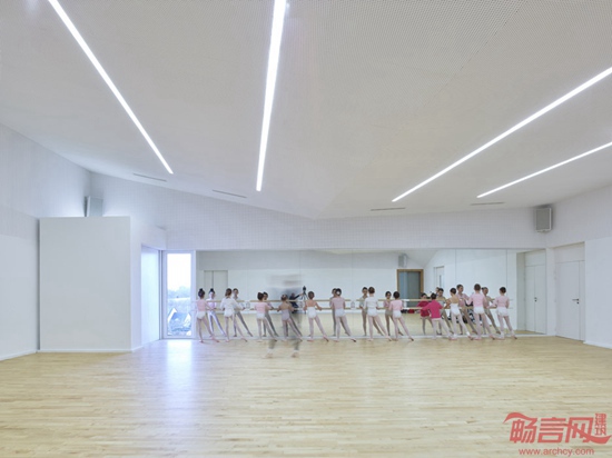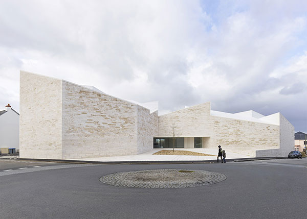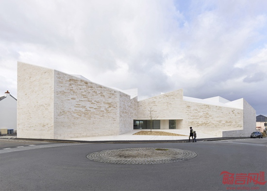 Fernandez & Serres公司完成了位于法国南特的文化中心。项目设有灰白的石砌墙面和坡屋面,对周边住宅做出回应。项目名为Cour et Jardin,坐落于南特市郊的Vertou,涵盖剧院,录音棚,音乐舞蹈排练厅。为了减少建筑的视觉尺度,设计师将其分成一系列小型结构。建筑上方设有统一的坡屋面,其角度朝向不一,恰好和周围的房屋相符。