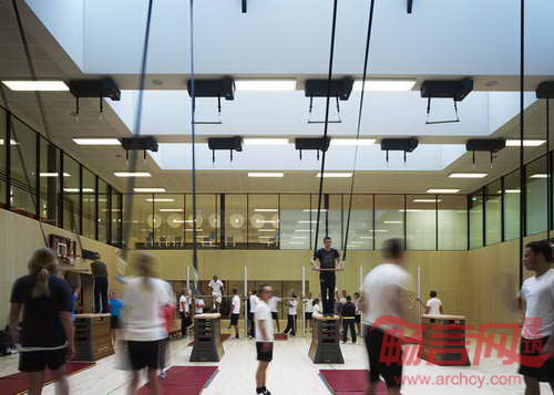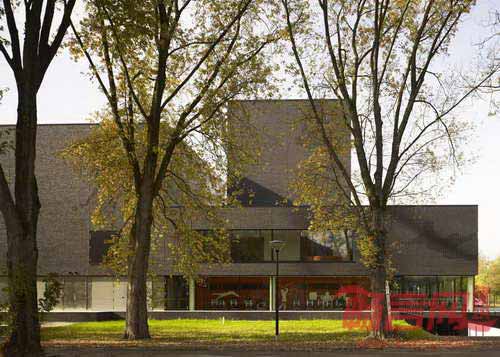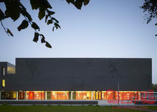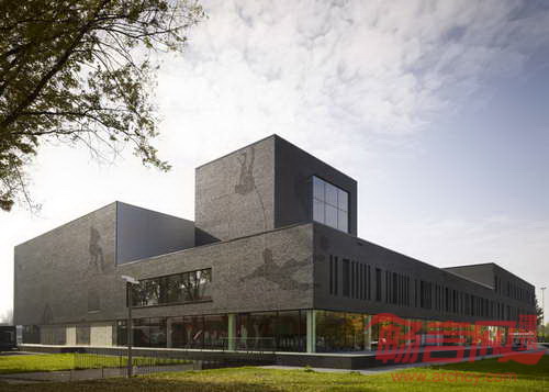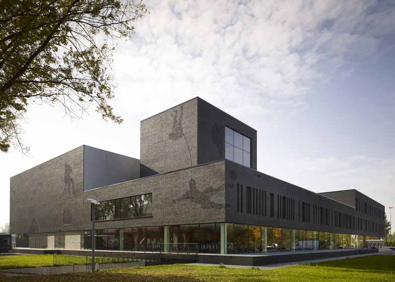 Fontys体育学院位于荷兰埃因霍温,其黑灰色外墙上的穿孔组成了运动员的图形。Mecanoo建筑事务所完成了位于Genneper公园内的建筑项目,容纳了泳池、室内体育设施、15米高的攀岩墙壁和学生教室。建筑师表示,“体育综合体的流通空间较为复杂,方便最大程度的跨学科体育和教育交流。”