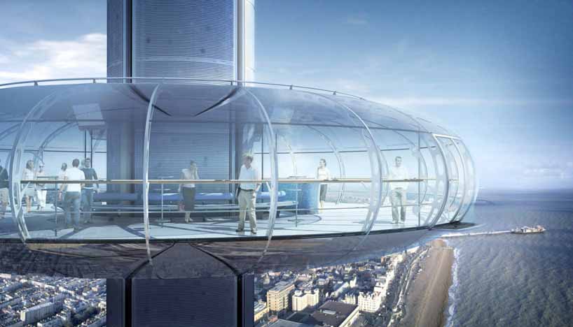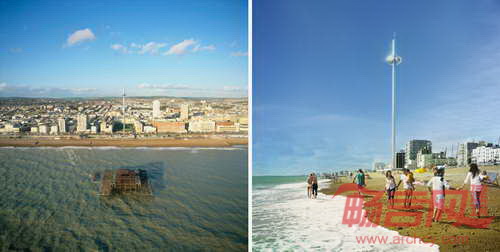 以设计伦敦眼摩天轮而著称的Marks Barfield完成了位于英国Brighton海滩的I360城市瞭望塔。项目是一个空气动力吊舱,可容纳200人,高度达138米,用时10分钟到达顶部。瞭望塔场地由西码头信托公司出租,预计每年将吸引80万名游客,为该地区带来就业机会,并促进区域经济发展。项目将成为英国伦敦以外地区最高的瞭望塔,位于2003年造火灾和暴风雨摧毁的历史上的西码头中轴线上。I360项目部分恢复了此前的西码头,包括原先的维多利亚时期收费站,部分铸铁支撑结构将得到重新利用。