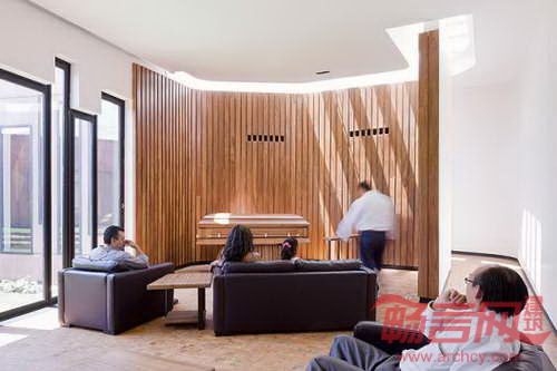 设计师首先开始设计休息室,并重点营造一种宁静、安享的氛围。空间必须是适宜人们滞留并宣泄伤感的场所。同时,空间还应当适合社交聚集,甚至逝者在重要程度方面退居第二位。为了达成这个目标,设计师将社交空间和休息室分隔开,并将花园变成休息室的延伸部分。