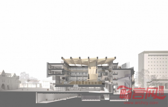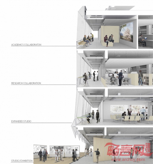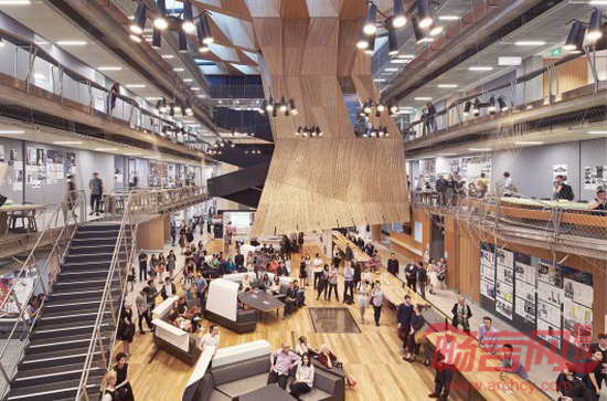 John Wardle建筑事务所和NADAAA公司合作完成了墨尔本设计大学墨尔本学院设计工作。项目面积1.6万平米,于2014年完工。项目融合了大学场地和校园设施、院系建筑的多种要求。项目地上六层,地下一层,涵盖演讲厅、工场、图书馆、两个展示空间、咖啡厅、一系列工作室、学术专业工作空间。