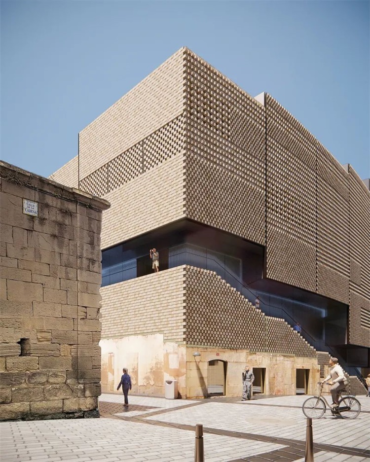 这个庭院区并不是唯一一个被规划为公共空间的区域:由于高度的落差,建筑屋顶将是人人共享、拥有不同城市风光视野的绿色空间。此外,该项目毗邻石桥的战略位置使建筑师考虑与通往洛格罗尼奥的圣雅各之路(Camino de Santiago)建立潜在的协同效应。