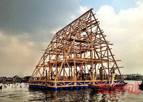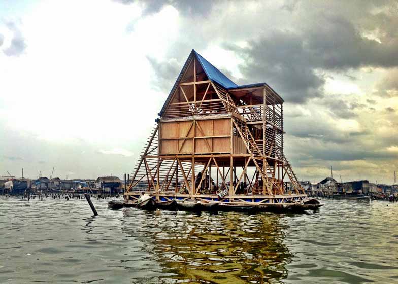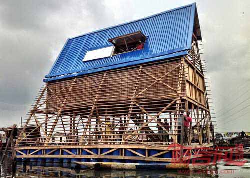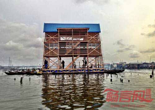 NLE工作室设计了位于尼日利亚拉各斯的Makoko水上学校项目。NLE工作室由出生于尼日利亚的建筑师Kunle Adeyemi创建,旨在针对非洲地区缺少基础设施、常遭受洪水灾害的状况,建立此类项目建筑模型。项目具有建筑加船舶属性,为Maokoko贫民区提供教育设施,该区域曾是渔村,目前有10万居民居住在桩柱建筑内。在该学校项目建成前,地区仅有一座教授英语的学校,而该学校常被洪灾损坏。即使在恶劣天气时,建筑结构也可承载100名成人。除教学功能外,建筑还可承办各类活动,包括医疗和集市在内,解决社区居民多种需求。
