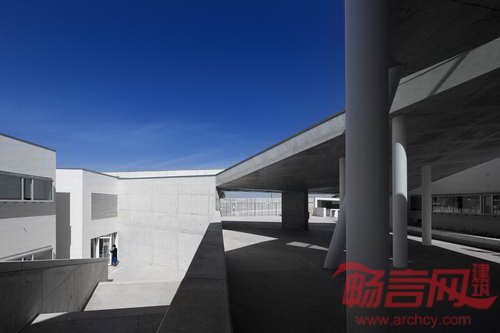 Canecas高级中学位于葡萄牙Odivelas,设计意图是诠释两种不同学习理念——传统正式学习和轻松非正式学习模式。两种模式通过不同建筑手法得到展现。已有建筑呈现出依次整齐排列的外观,略显僵硬的形式仿佛将教室塑造成“学习机器”。与之对照的事,新建建筑致力于营造公共空间中的非正式学习环境。