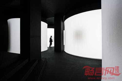 克罗地亚Brigada工作室受香烟和烟圈启发,为一个关于吸引文化的展览创造出带有光亮圆筒的房间。